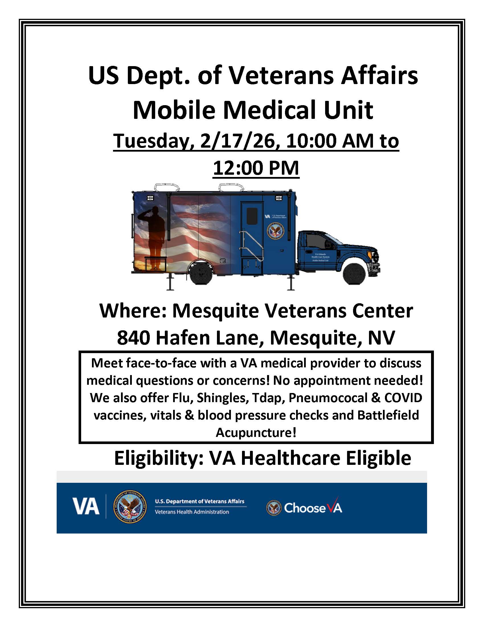 The Mobile Medical Unit here in Mesquite @ Veterans Center on Thursday, 2/17/2026